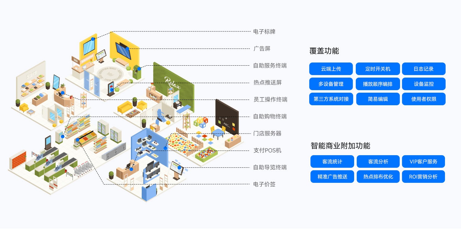 开云kaiyun 全球数字化访问方案实现了门店全流程全维度的数字化转型与应用,嵌入式系统/电脑等智能终端设备是构成方案的的基础支撑,为智慧零售提供计算、控制、决策能力。其中,配备数字标牌播放器的广告机提供推广信息的数字化显示,不仅可以提升门店的视觉吸引,结合AI人工智能模块软件,还可实现精准推送;自助服务终端设备的应用,可以减少排队等待时间,简化下单、买单、支付等流程,节省人力、物力与时间;员工收银终端等可以提升收银流程效率,减少人为差错,使账务实现数字化管理等等。