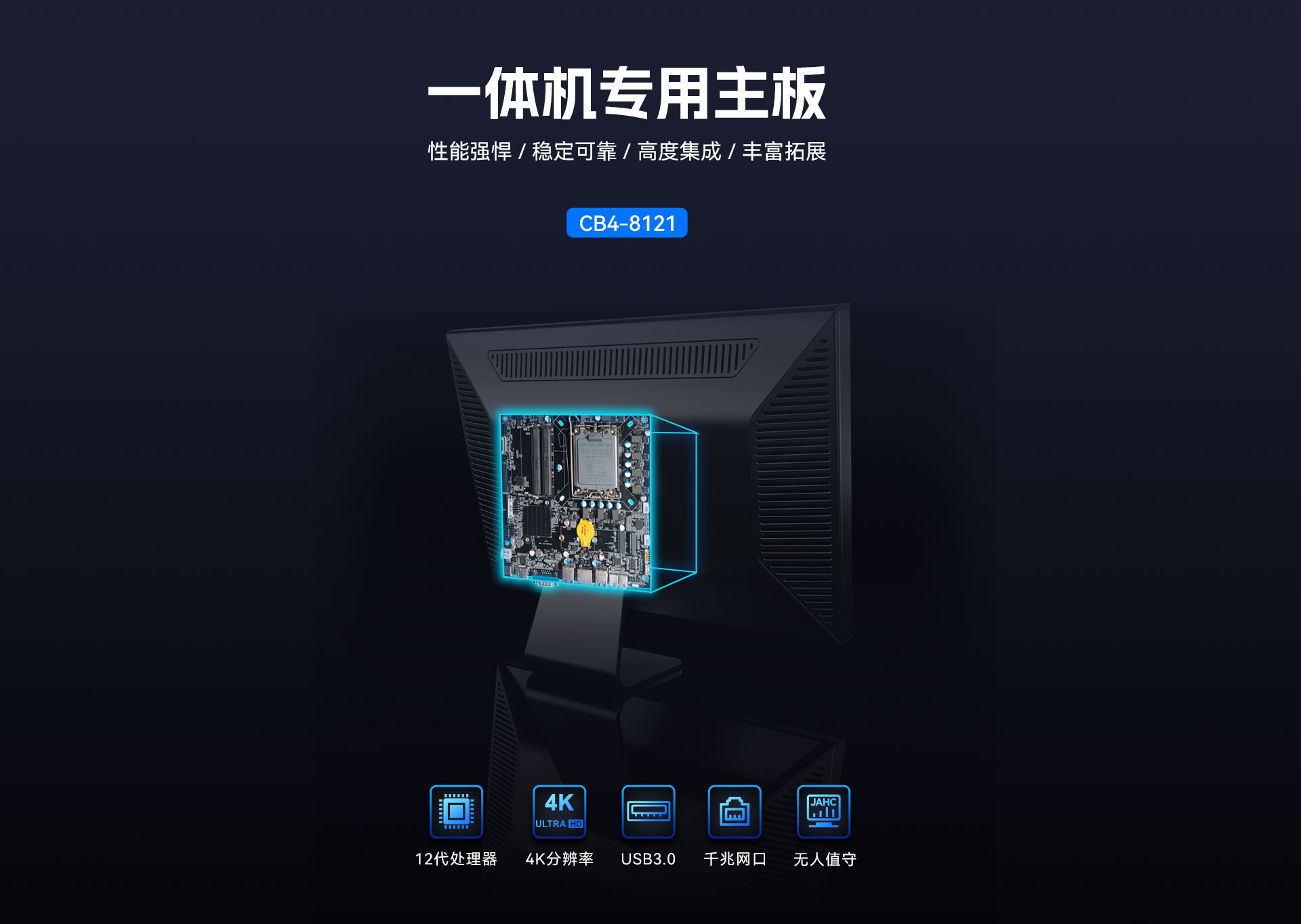 而一体机系统作为一体机的核心组件,其性能直接决定了平台的表现,开云科技根据以上的市场情况及客户需求,推出这款高性能的基于Thin mini ITX一体机标准设计的一体机专研系统CB4-8121。