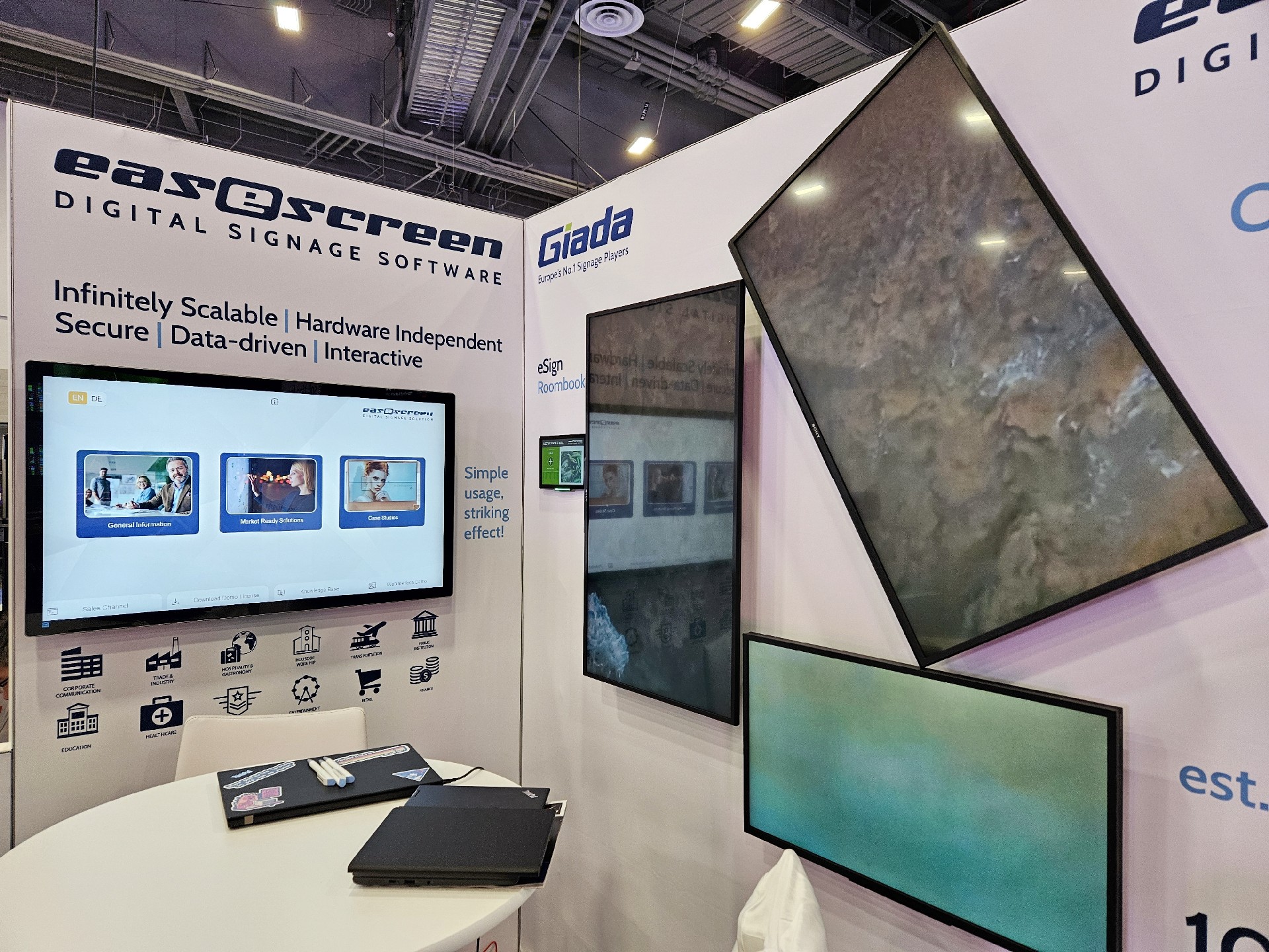 开云科技kaiyun作为全球数字标牌领域的领导品牌,产品应用范围涵盖全球大型连锁店,购物中心,学校,医疗机构,企业办公室等。本次展会,开云科技牵手合作伙伴easescreen,展示一系列创新数字标牌解决方案,带来强势产品及最新产品,现场收获超高人气。