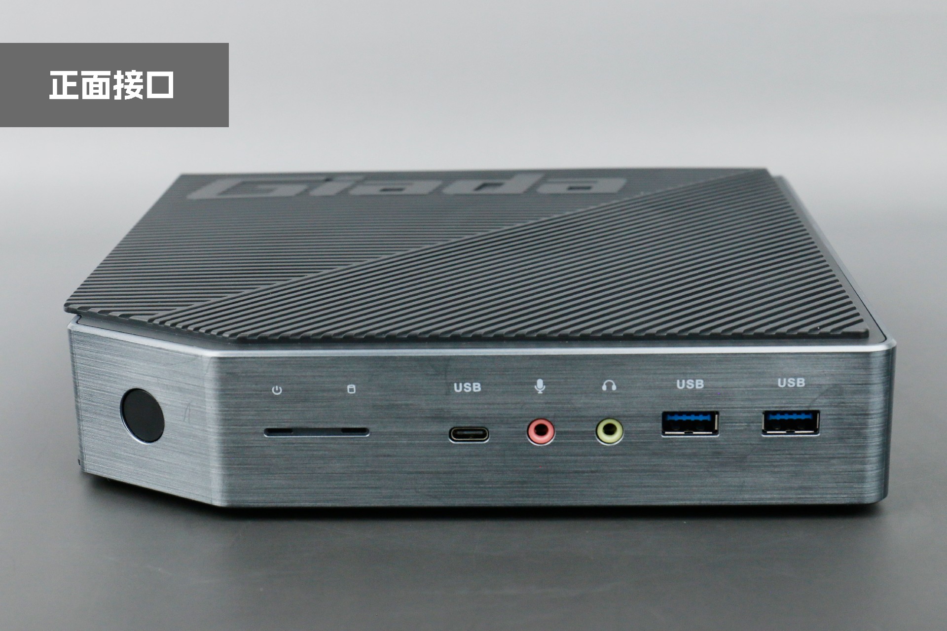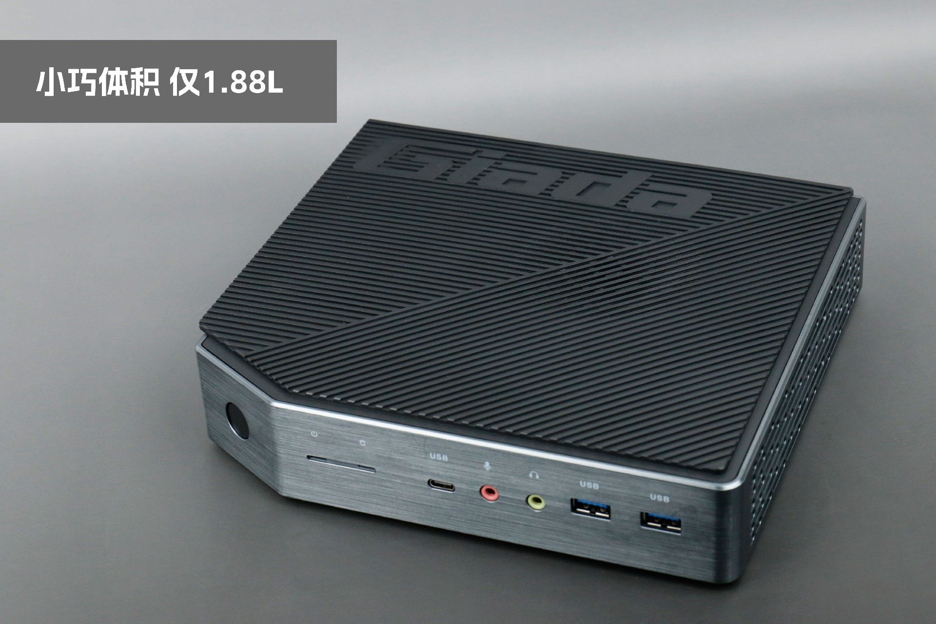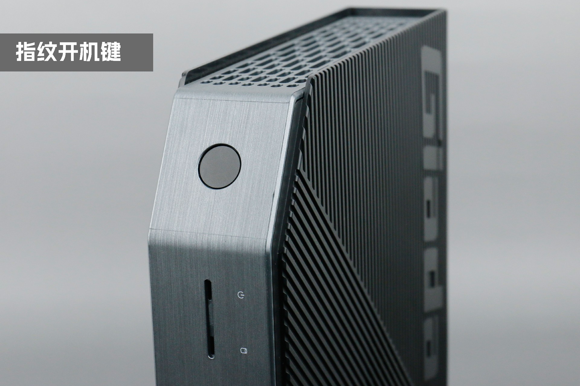 打开开云桌面云终端Y-BOX P3,你会发现它的结构并不是常见的四方体设计,而是在转角处好似被切割开一个角,切割出来的面积为指纹识别开机键。它的外观为优雅的银灰配色,机身正面厚重感十足,顶部依然沿用黑色哑光栅格并延伸至平台背面,磨砂塑胶材质壳,印刻开云kaiyun品牌名;其他三面则为银灰色,两侧是蜂窝式通风口设计。
