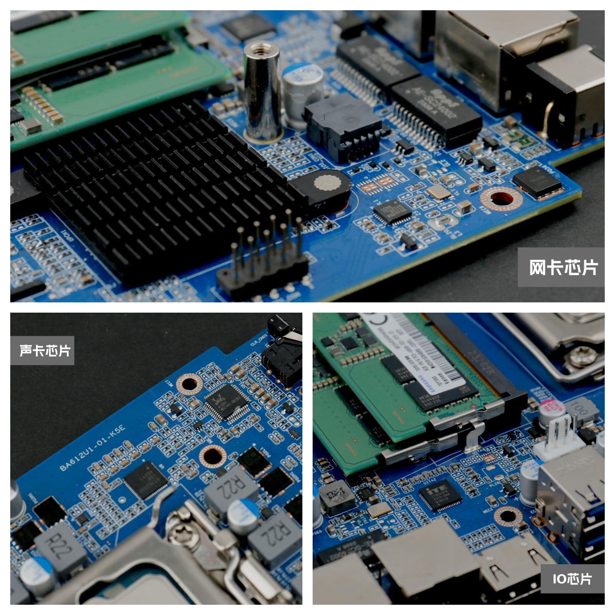 开云桌面云终端Y-BOX P3系统采用的是6相供电,为H610入门级芯片组,CPU附近都分布了相关的芯片,在千兆网口附近有2个网卡芯片RTL 8111H,在系统背面的音频接口附近可以看到1个经典的“小螃蟹”ALC897 声卡芯片,声卡芯片附近有一个I/0 芯片ITE8613E-LX。