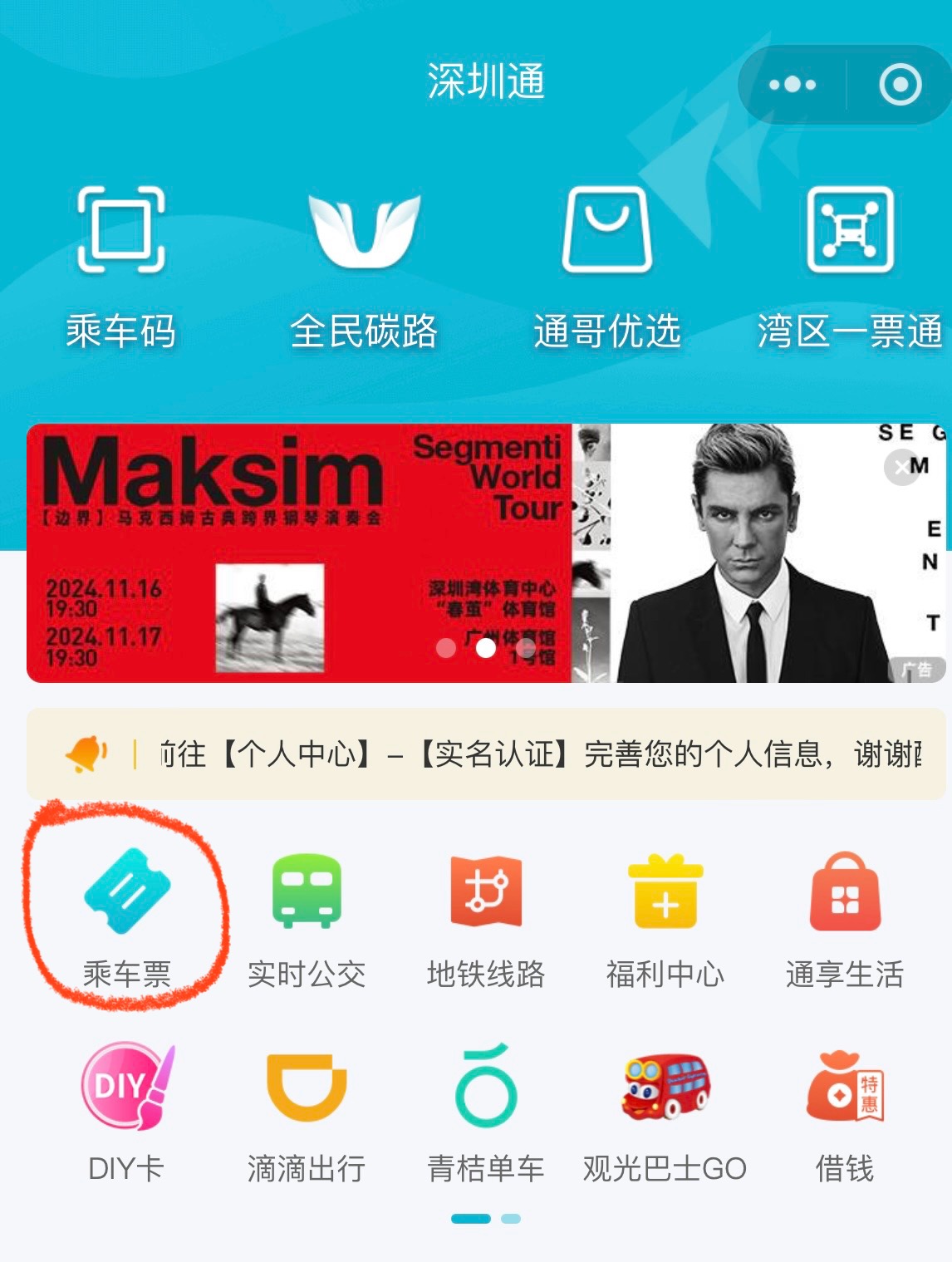 5、请用登记注册的手机号,登录深圳通APP或“深圳通+”小程序,用别的手机号将看不到展会乘车票。