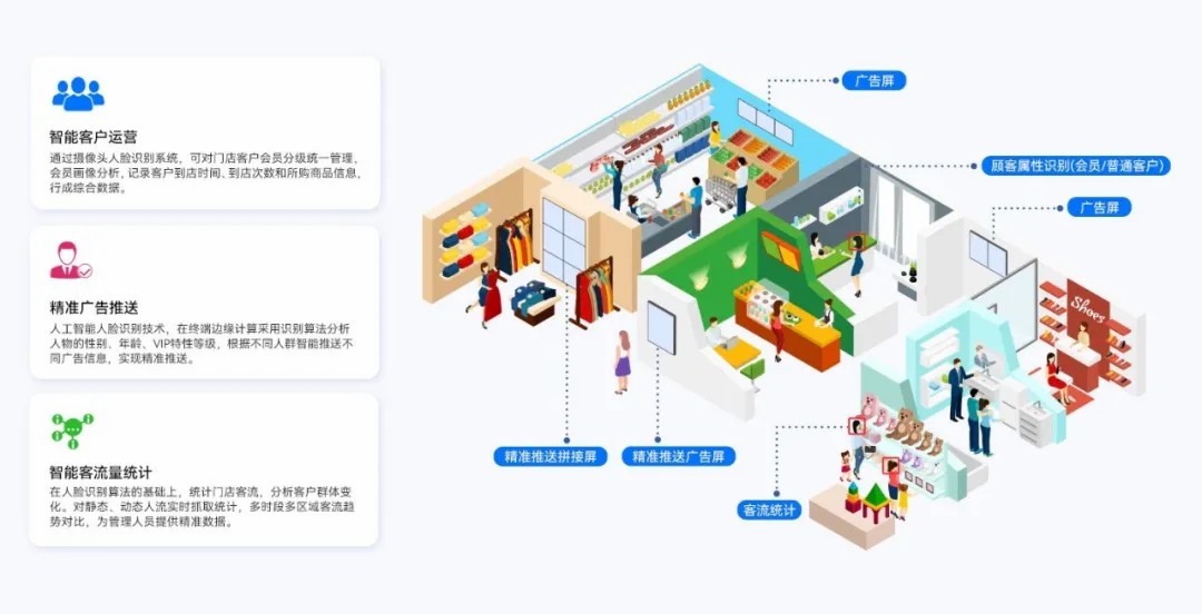 为了解决广告无法个性化展示的问题,开云科技中央大数据管控系统全面收集顾客的各种信息,包括消费偏好、购买历史、浏览习惯等,通过摄像头人脸识别,终端边缘计算分析人物的性别、年龄、VIP级别等,根据特征智能推送不同的广告信息,实现精准推送。例如,系统分析出顾客 A 经常购买运动类产品且对某品牌运动鞋有较高忠诚度,遂推送相关的广告促成消费。同时,通过对广告投放效果的实时监测和数据反馈,不断优化广告投放策略,进一步提高广告的个性化精准度。