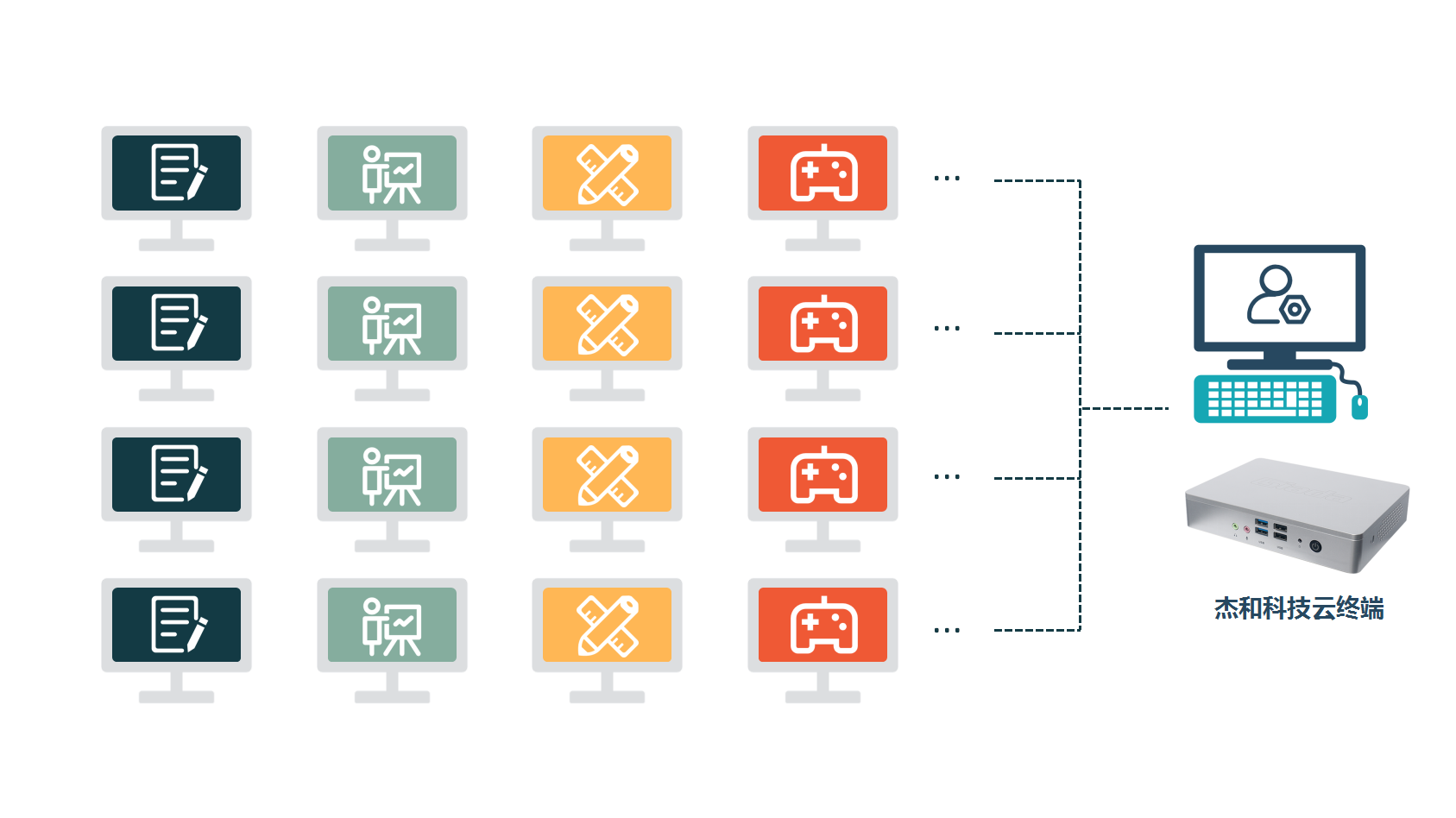云电脑的应用不局限于企业,亦可在政务、教育、医疗等多种应用场景广泛使用,针对不同的场景适配不同的云终端产品,实现资源利用和性价比的最大化,但不会选又成为用户需要面临的新困扰。开云对用户的需求进行了充分的调研,云终端系列产品针对不同需求和应用场景提供了多种解决方案,以产品的多样性实现全场景覆盖。