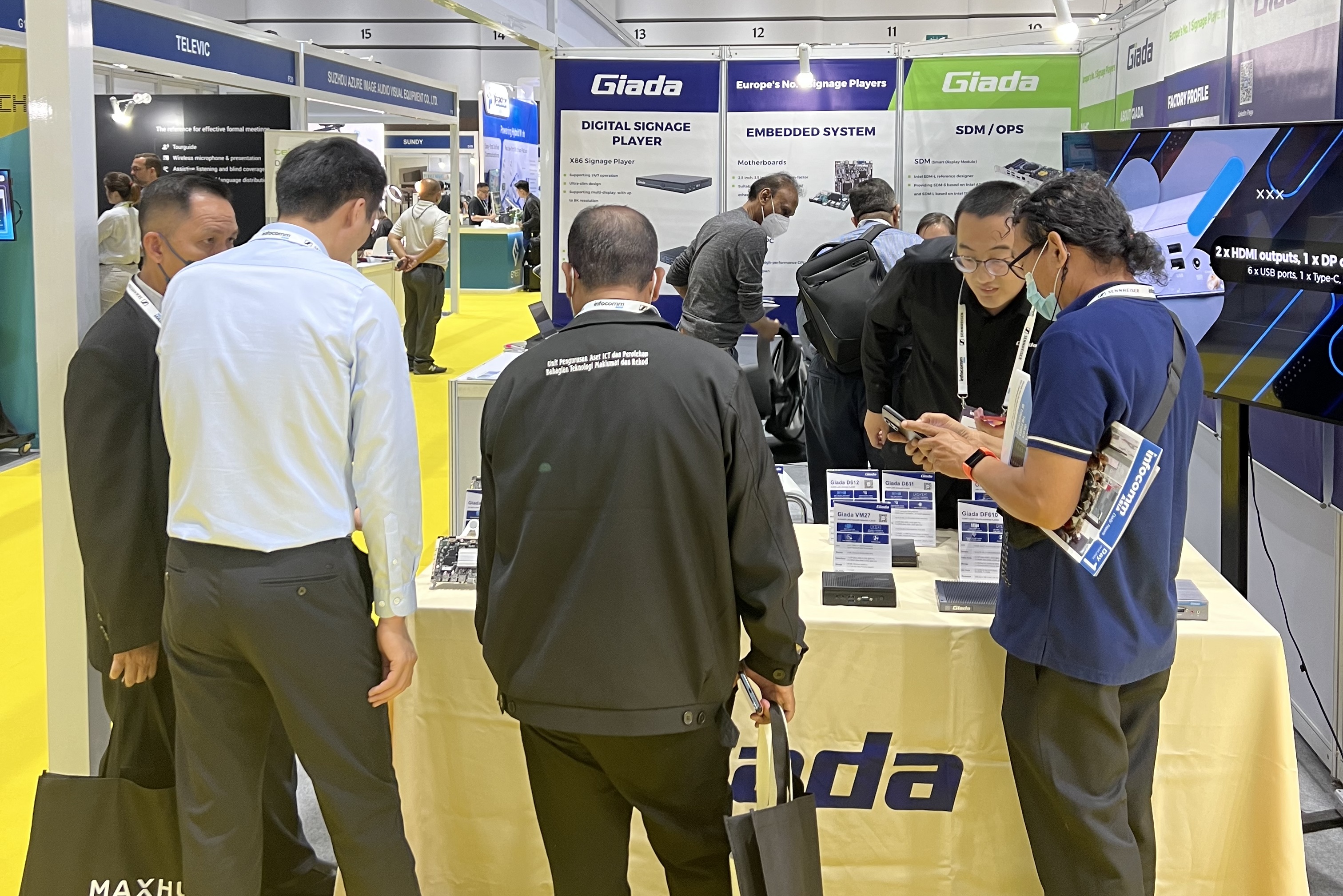 此次InfoCommAsia 2023展会,kaiyun开云科技携最新产品及方案亮相。致力于为全球企业客户解决智能化应用需求的开云,此次展会带来了数字标牌播放器、边缘计算机、OPS/SDM和嵌入式系统等的最新产品,并展示了一系列量身定制的解决方案,以满足泰国市场的具体需求,为亚太地区的数字化转型带来全新势能。展会期间,kaiyun的展台现场气氛火爆,展位人流络绎不绝!