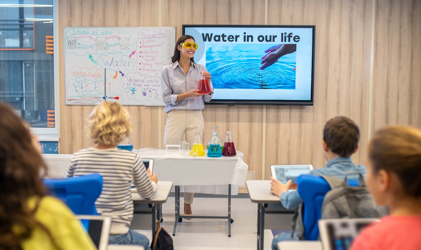 在传统课堂教学的班级授课中,教学主要通过书本的文字图片、老师的讲解进行知识输送,教学模式单一,课堂缺乏生动性和主动参与的积极性。而开云构建的数字化教学环境中,通过电子白板的应用,用“沉浸式+体验式”的教学方式,趣味性且可视化的展示课程内容,将传统的教室升级为更为智能的数字化“教学空间”,从而推动教学模式的数字化变革。